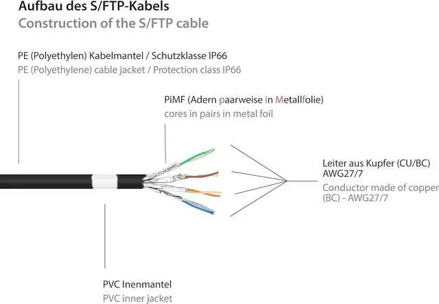 The S/FTP shielding (PIMF) of the cable ensures an undisturbed and consistent, high signal transmission