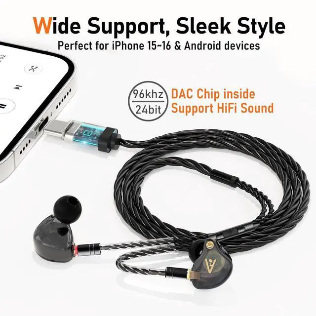 WIDE COMPATIBILITY & PREMIUM POUCH - HC001MC earphone replacement cable is compatible with Shure SE series earphones (SE215, SE315, SE425, SE535, SE846), Vibes 201/202 earbuds, and USB-C devices including smartphones, laptops, and tablets. Includes a premium carrying pouch for convenient storage and travel. Notice: This MMCX cable is not compatible with: (1) 2-pin IEMs like the KZ series; (2) MMCX IEMs from Sennheiser or the AKG N5005.