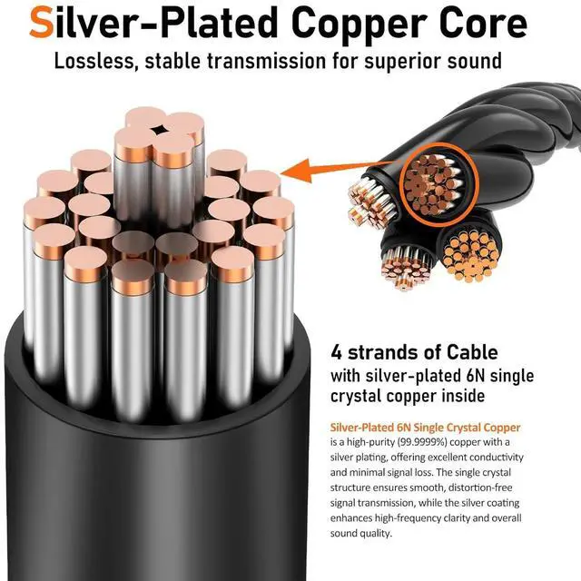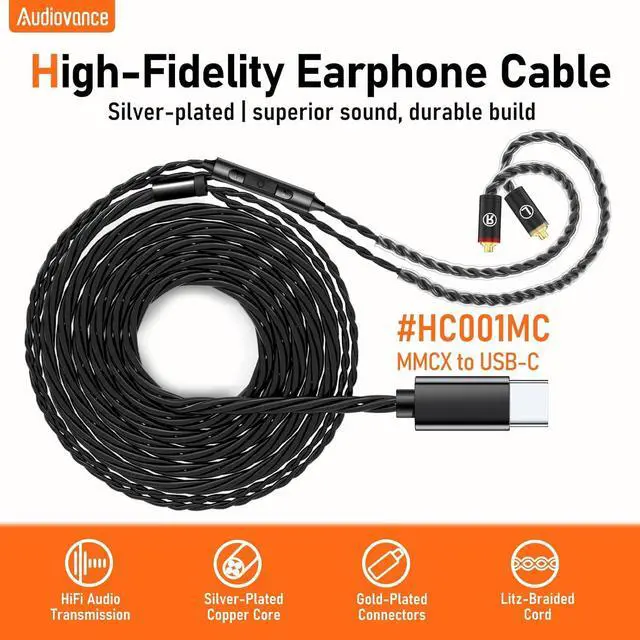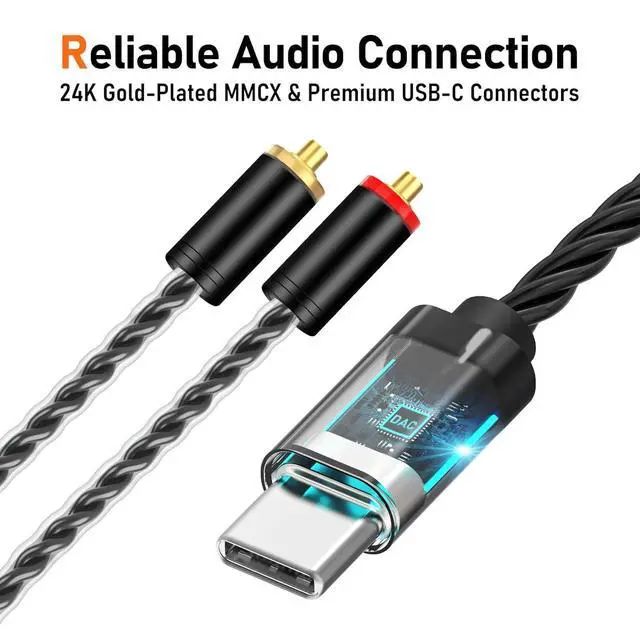 HiFi SOUND FOR MUSICIANS & AUDIOPHILES The HC001MC USB-C to MMCX cable delivers lossless, high-fidelity audio, perfect for studio sessions, live performances, or personal listening. Its premium USB-C connector with a built-in DAC supports 96kHz/24bit high-resolution sound. Silver-plated 6N single-crystal copper conductors ensure precise transmission, while 24K gold-plated MMCX connectors enhance signal integrity and durability.
