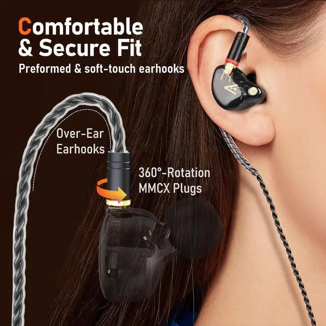 COMFORTABLE & SECURE FIT - Featuring pre-formed ear hooks, soft-touch materials, and 63" length, HC001MC in-ear monitor cable provide a secure, comfortable fit, keeping your earphones in place for long listening sessions. The 360° rotating MMCX connector allows flexible positioning for various activities.