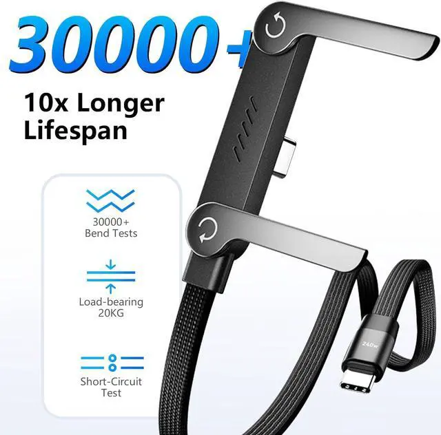 DurabilityDesigned for everyday use and travel, this foldable USB-C cable is durable with a robust braided outer sheath and a convenient 90-degree right-angle USB-C connector. This design reduces cable tangling, allows for easy storage in confined spaces, and extends the lifespan of the charging cable