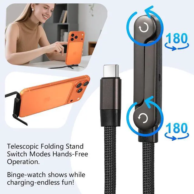 Foldable Stand DesignBuilt with a precision hinge structure that allows multi-angle free positioning, providing stable support in both landscape (for videos) and portrait (for work) modes. The charging cable is cleverly integrated into the stand, eliminating desktop cable clutter