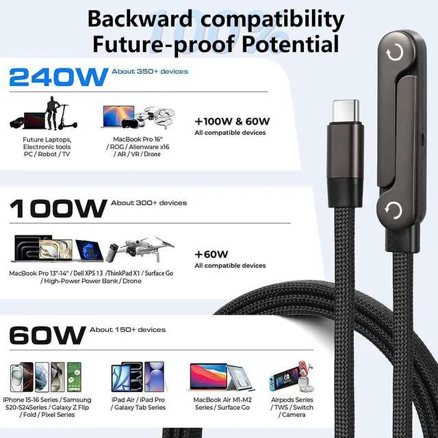 Wide Compatibility with Fast-Charge ProtocolsFully supports mainstream fast-charging protocols, compatible with a wide range of USB-C devices including smartphones, tablets, and laptopsone cable for all charging scenarios