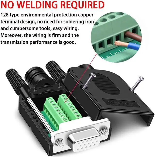 2PCS Female VGA Solderless Quick Connector 16mm Thinner 3+9 DB15 3Row Serial Plug to 15-pin Port Terminal Female Adapter Breakout Board Compatible with VGA 3+7/3+6/3+6/3+4/3+2