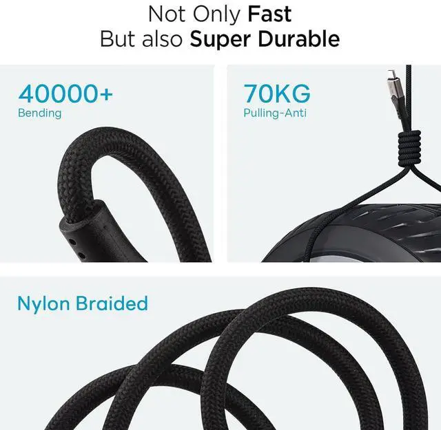 240W ultra high speed charging: The USB C data transfer cable supports power transfer with up to 240W of power, meaning faster charging, less waiting time, and keeping your device in tip-top shape at all times. Over the next five to ten years, this 240w USB-C charge cable's high-speed data cable is more than enough to handle all the demands of fast-charging
