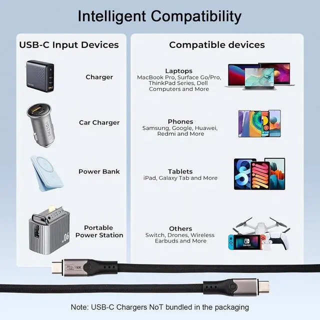 A new realm of HD video transmission: Currently on the market, many USB C data transfer cables only support 8K resolution. Our USB C high-speed data transfer cable can support 16K@60HZ video transmission, which is four times clearer than 8K. For users who pursue the ultimate visual experience,16K resolution will bring unprecedentedly fine picture quality and color performance.