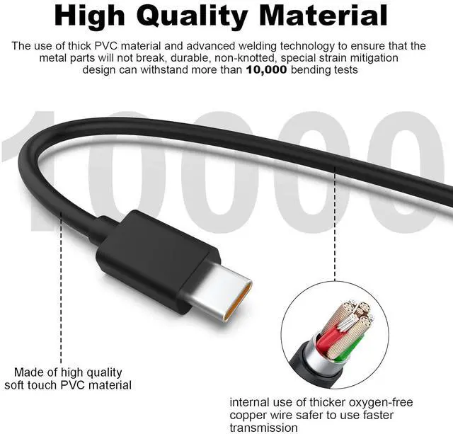 High Quality Materials: The Type c USB charging cable is made of thick PVC material and advanced soldering technology to ensure that the metal part won't break, durable and free from kinks, special strain relief design can withstand more than 10,000 times of bending test