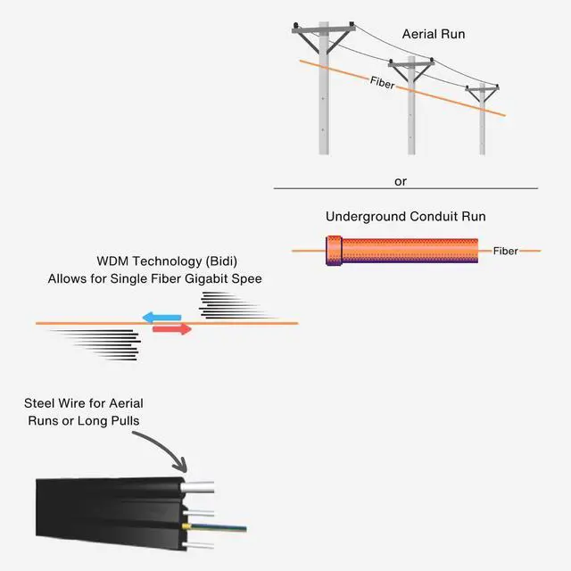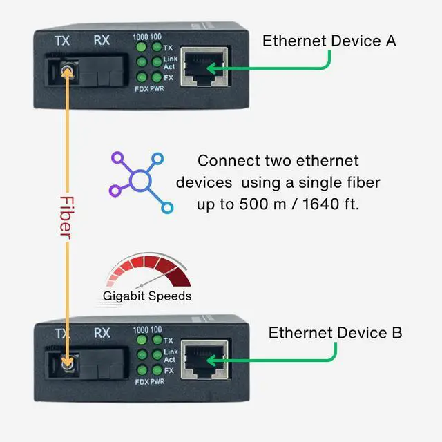 Gigabit Media Converters extend network or ethernet devices using a single fiber optic cable by utilizing bidirectional WDM technology.