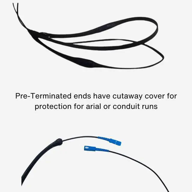 Pre-terminated fiber optic cable for a plug & play installation no configuration or special tools needed.