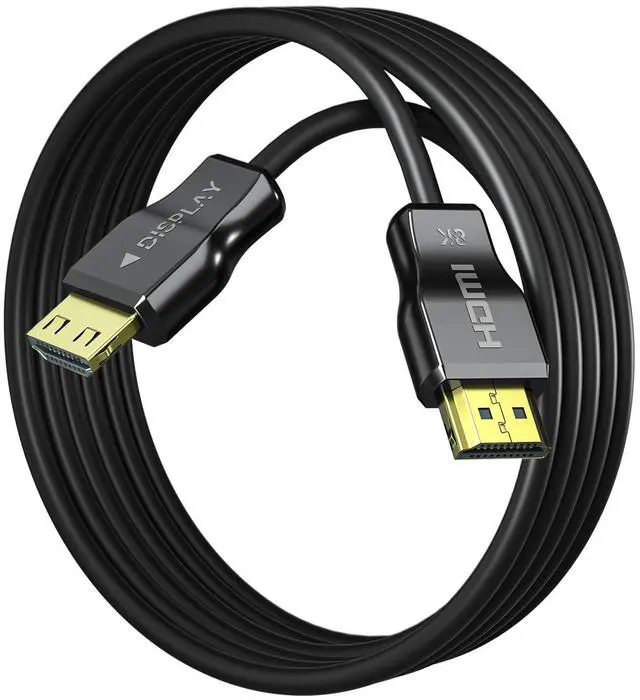 Military-Grade Durability for Tough EnvironmentsBuilt to withstand the demands of any setup, this ultra-thin 48Gbps fiber optic HDMI cable features reinforced connectors and a flexible, low-profile black jacket. It resists bending, pulling, and extreme temperatures, making it ideal for tight spaces behind TVs, under carpets, or permanent installations. Designed to outlast standard **HDMI 2.1 cables **, ensuring long-term reliability.
