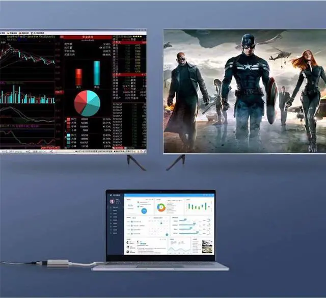 IMPORTANT NOTE1, The Extend Mode support Windows System streaming different images in three displays. Due to the Limit of Mac OS, the image on MAC device for both screens will display the same. 2, Please directly contact the USB C end to your device , not to the docking station or hub.