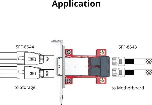SAS Adapter fast transmission, supports up to 12Gb/s Mini SAS Data Transfer Rate and backwards compatible with 6 Gbps SAS & SATA drives.
