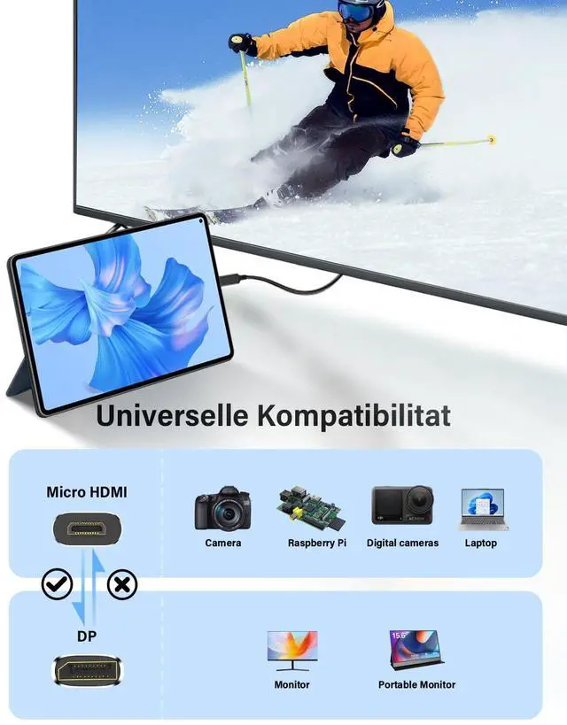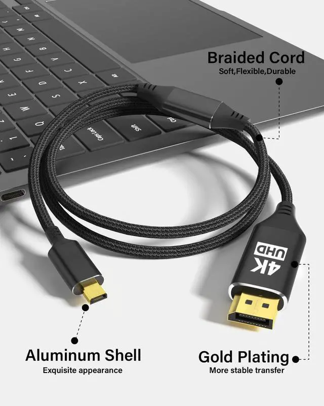 Micro HDMI to DP The cable supports 4K@60Hz, 2K@165Hz Full HD resolution, 3D Technology, 18 Gbps bandwidth and Audio Return Channel, to deliver high-definition video and uncompressed multichannel digital audio