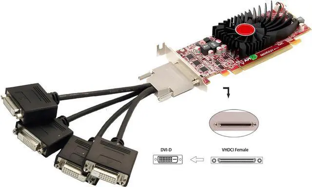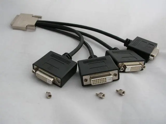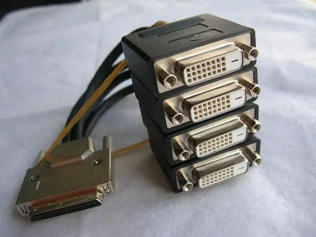 : Before using the VHDCI to DVI*4 Cable, please ensure that your computer's graphics card features a VHDCI female output interface and supports multi-screen output, and the monitors are equipped with DVI input interfaces. Typically, this type of cable is designed for multi-screen display setups, so it's important to verify that your computer equipment meets these requirements prior to purchase.
