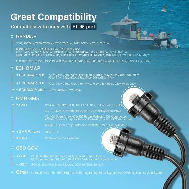 Great CompatibilityWidely compatible with Garmin GPSMAP, ECHOMAP Plus/UHD/Ultra, GMR, GMR Fantom, GMS, GSD, GCV 10 Scanning Sonar Module; GCV 20; GDL 30/30A; Panoptix: PS51-TH; Ultra High-Definition Scanning Sonar System; Volvo Penta Glass Cockpit System