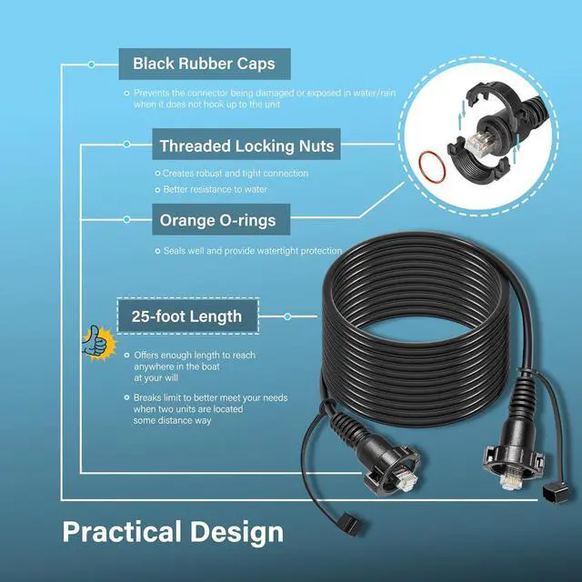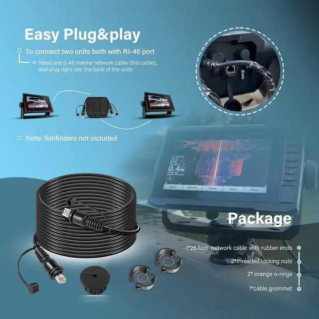 Add LengthDesigned with two RJ-45 connectors on both end, this 25-foot network cable offers enough length to reach anywhere in the boat. By adding extra length, it makes it possible to network units together and share data/waypoints/maps/images even when such units are located some distance way.
