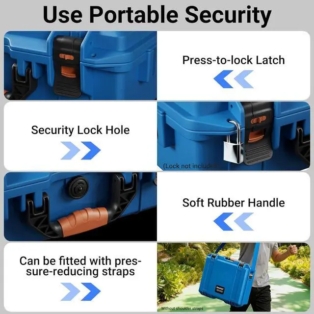 Enhanced Security, Easy Locking: Dual-locking design with one-touch press lock secures equipment with a light press for a few seconds. Reinforced latches enhance sealing for transport without loosening. Both sides accommodate padlocks for added security against unauthorized access. Whether stored at home or carried on the go, the starlink mini hard case balances convenience with reliable protection.