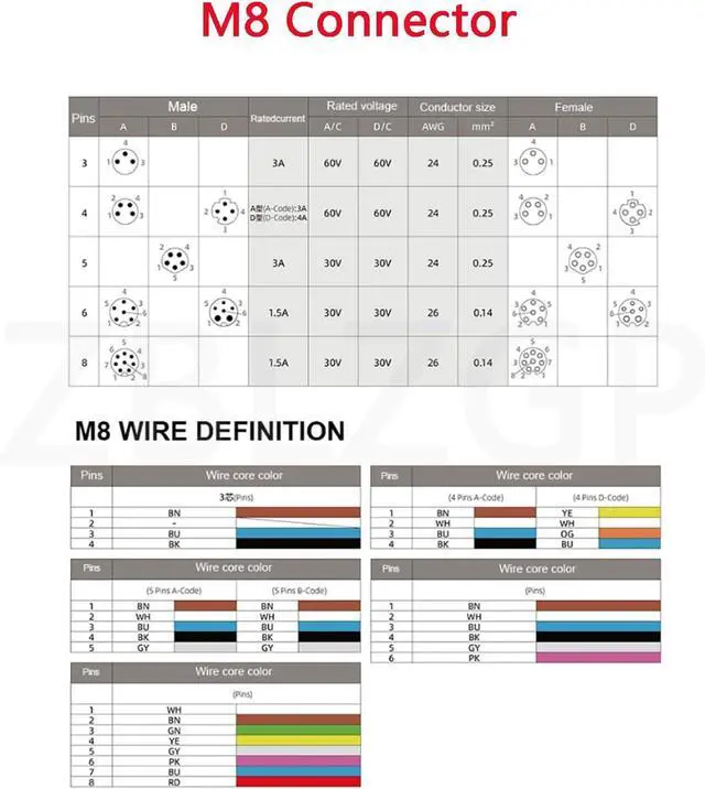 Cable Lengths:5M/16.4FT.(If you need other lengths,please contact us.)Cable Diameter: 3.5mm~ 5.6mm; Shell Material: Plastic and Brass Alloy; Insert Material: PA66+GF20%.