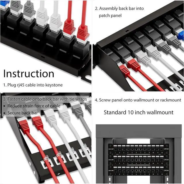 Toolless Termination: Iwillink Cat6A pass through patch panel 12 port came with couplers making it easier to connect the cables without any punching down. Simply plug the Cat6A cable into the RJ45 coupler jacks on either side of the ethernet patch panel