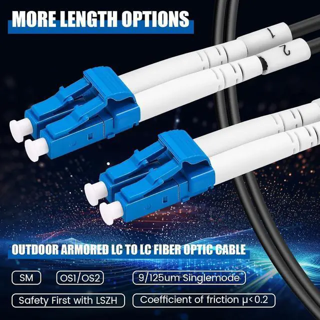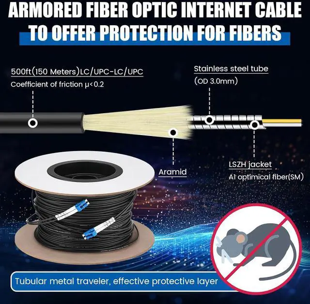Suitable for Outdoor: this LC fiber optic cable is equipped with a stainless steel tube inside, with a cable diameter of 3.0mm; While retaining all the functions of a standard patch cable, it is crush resistant, boasts higher strength, and can protect the inner core (glass fiber) from damage caused by rodents chewing and other factor; It is also heat resistant, offering excellent stability and oxidation resistance