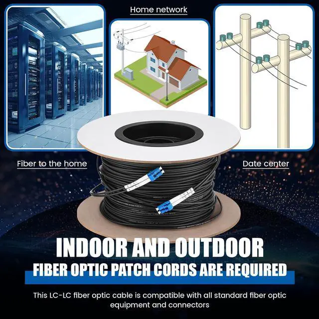 Wide Application: this outdoor LC-LC fiber optic cable is compatible with all standard fiber optic equipment and connectors, commonly applied in passive applications such as GPON, FTTX, and LAN; The LC-LC fiber cable is suitable for storage area networks and data networks, connecting to transceivers, Ethernet switches, and media converters