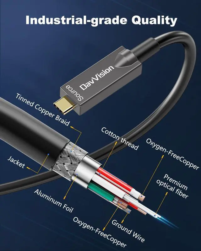 Lifetime Customer Support: With 12 years experience,DavVision fiber optic usb c supports two-year warranty and lifetime technical support, 20+ engineers on standby for you, offering telephone conference and video conference guidance if necessary.