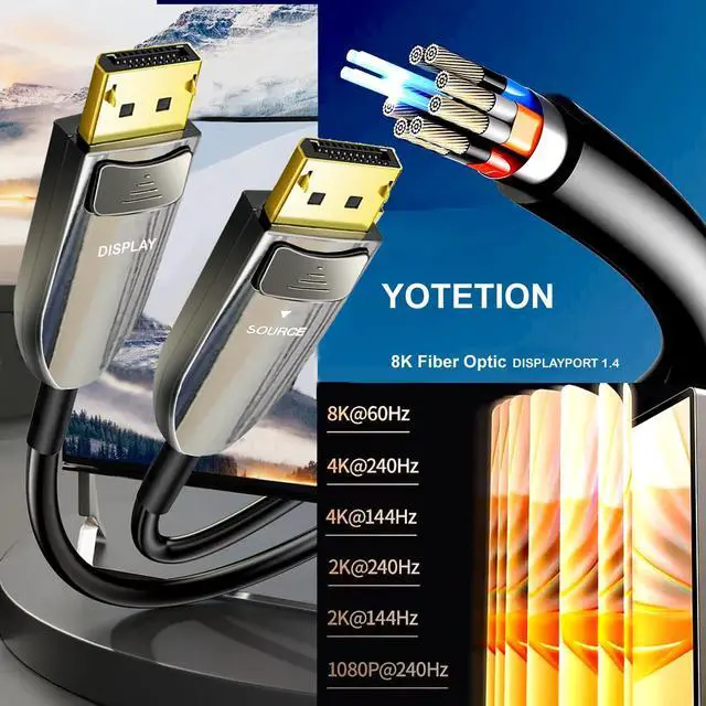 Powerful,Widely ApplicableFiber Optical Displayport 1.4 cable supports dynamic HDR 10, 3D visual effects, VR Headset, HDCP2.2, 32 audio channels and 1536 KHz sample rate; Powerful features that adapt to multiple devices in your home to make your experience even more rewarding.