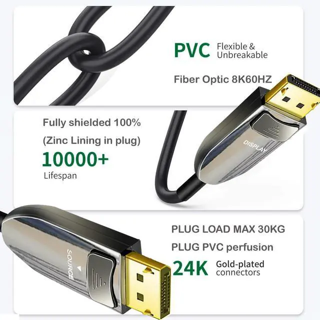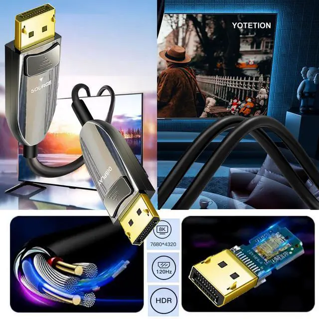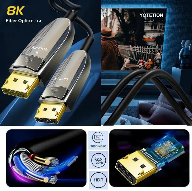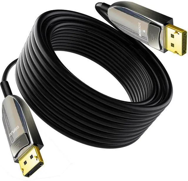 Notice before ordering: Fiber Optic Displayport Cable is One Direction Transmission, It must be installed in the correct direction: The Cable with "Source" plug for connecting Out devices(Blu-ray player, Xbox one etc.); "Display" plug for connecting your display devices(TV, Projector,Monitor etc.). And please make sure your devices support 8K, If you want this fiber displayport cable to work with 8K features.