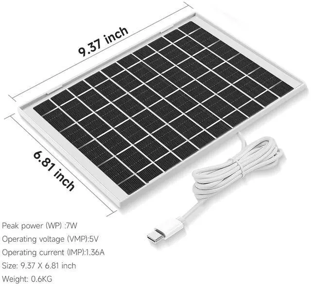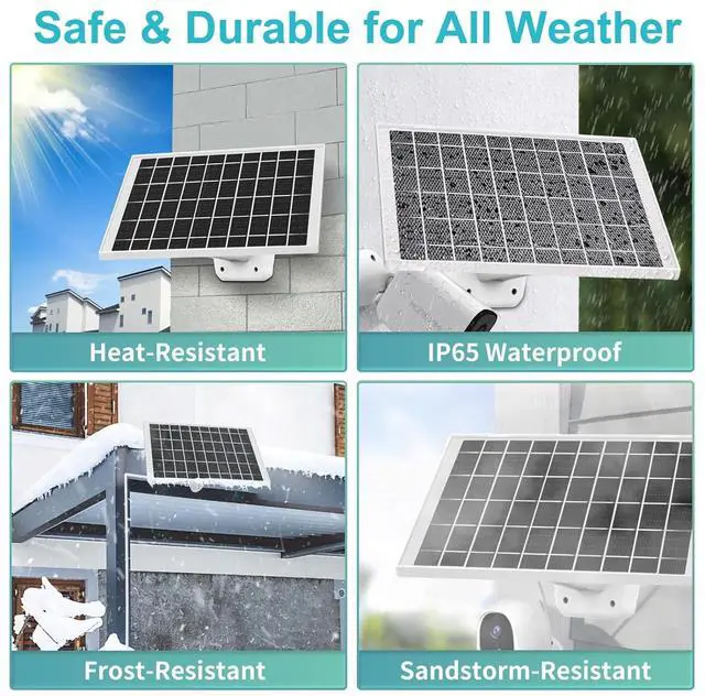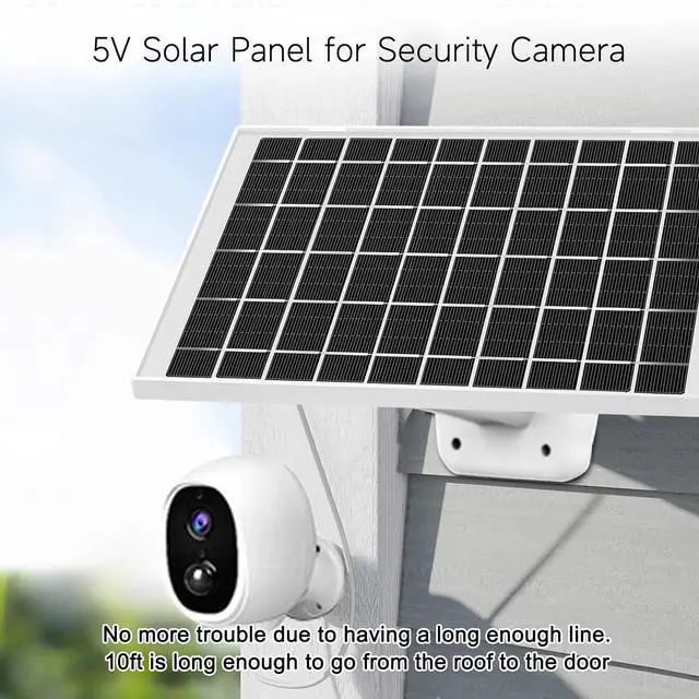 8W Power SupplyThe solar panel is made of stable and efficient monocrystalline silicon material, providing continuous solar energy for your rechargeable surveillance camera. 8W high-efficiency charging, Dont need to charging your camera anymore.