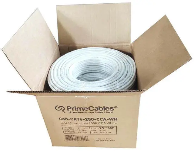PrimeCables 250ft Bulk Cat6 Solid CCA Ethernet UTP 23AWG, Waterproof Shielded Network Cable for Fast, Gigabit and 10-Gigabit Ethernet - White
