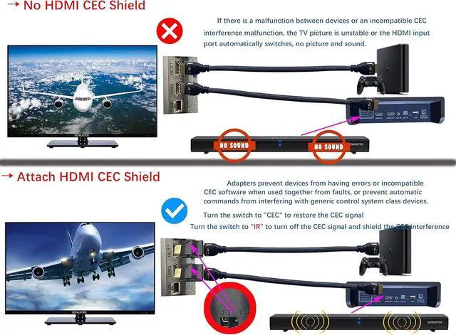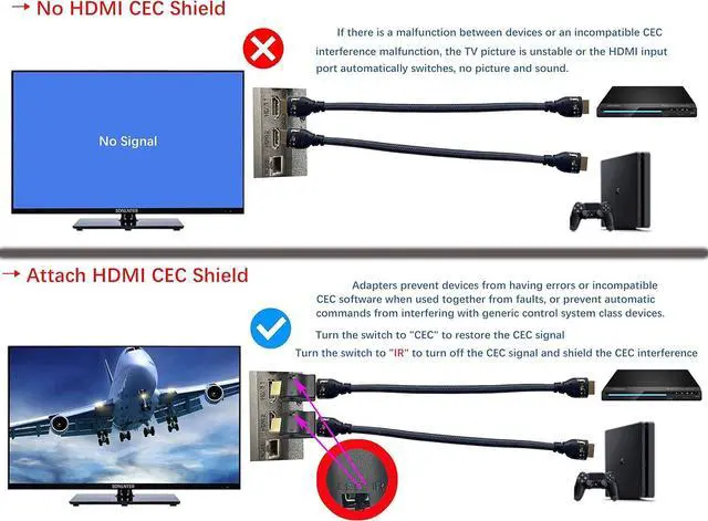 Supports latest HDMI standard HDMI CEC blocker Adapter supports 4K60Hz/18 Gbps ,3D,1080P1440HzUHD, ARC( Audio Return Channel ), Backwards compatible with earlier versions.