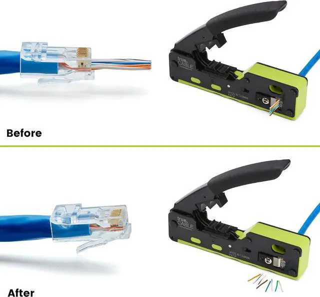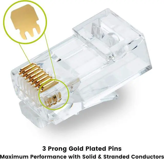 [Pass Through Design] No more load bars means less waste and frustration. The ability to see the conductors come through the front of the plug allows you to verify the correct TIA 568A or 568B color sequence which minimizes bad terminations.