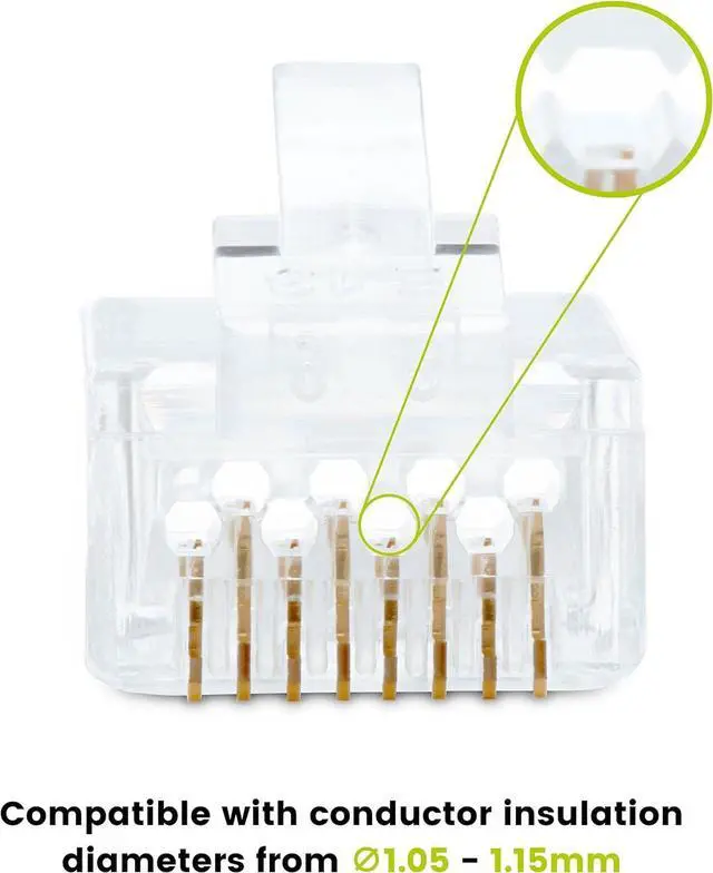 [Versatile] Works with 23AWG stranded or solid conductors. Suitable for cable jacket diameters up to 7.30mm and conductor insulation diameters from 1.05 - 1.15mm. Terminate with our All in One Crimp and Termination Tool.