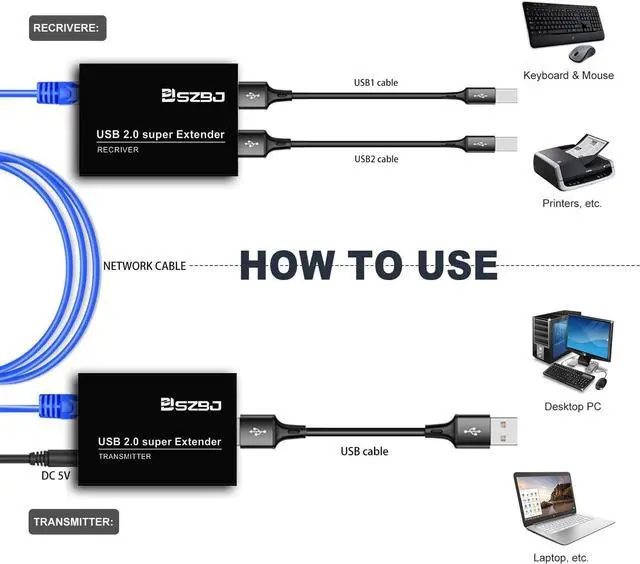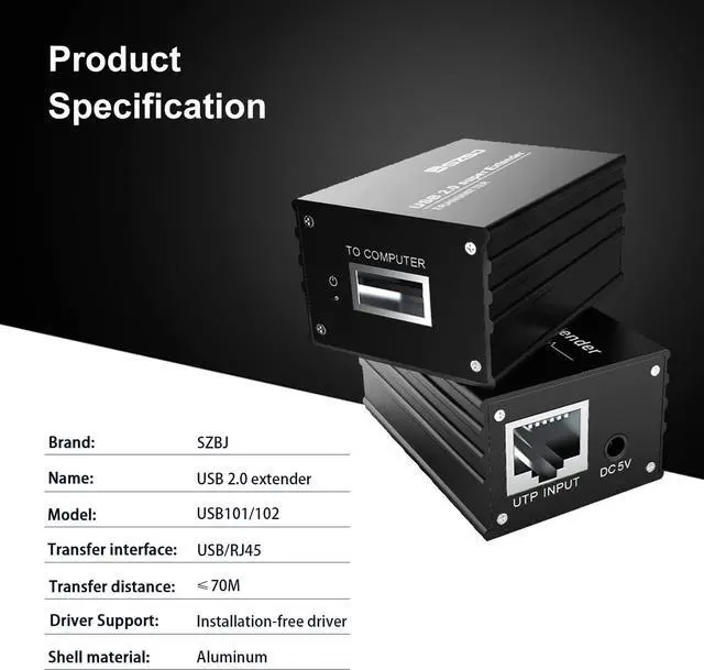 USB 2.0 extender Extend a usb signal over single Cat5e/Cat6 cable up to 230 ft(70M),2 USB output ports for connecting more external device.surveillance system etc; Stable signal and easy installation.