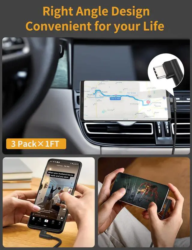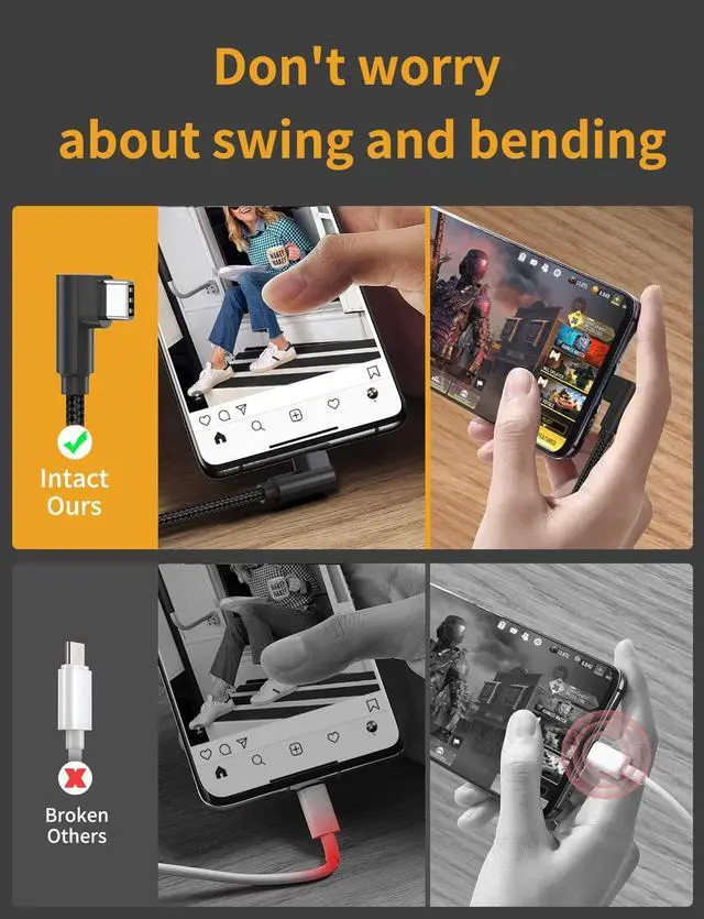 Better User ExperienceThis 90 degree "L" design right angle usb c cable is designed by professional designers. It provides a prime experience with convenience and comfortable when you playing games, browsing TikTok and reading e-books, etc.