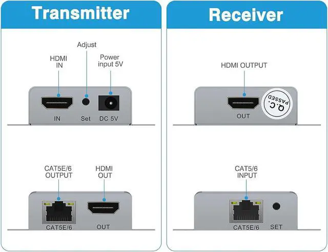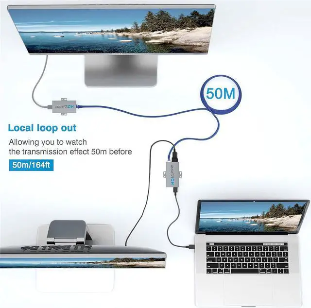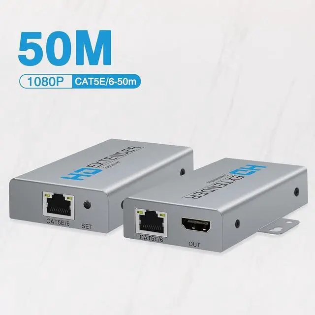 HDMI Extender over a single CAT5e/6With a single high quality CAT5e/ 6/ 7 cable, you can extend HDMI audio and video signals simultaneously for up to 164ft by this HDMI to Ethernet extender.