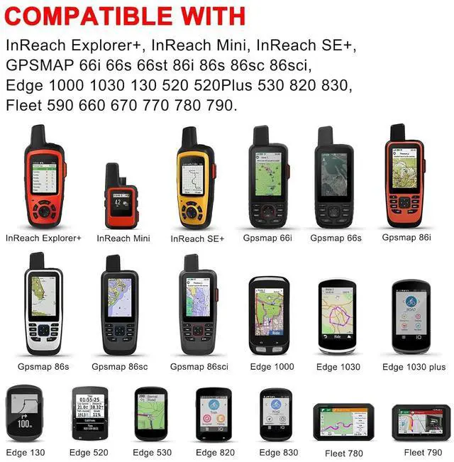 1.Micro USB cable Compatible :InReach Explorer+, InReach Mini, InReach SE+, GPSMAP 66i 66s 66st 86i 86s 86sc 86sci, Edge 1000 1030 130 520 Plus 530 820 830, Fleet 590 660 670 770 780 790 GPS(Note: Please check the charging port before purchasing)