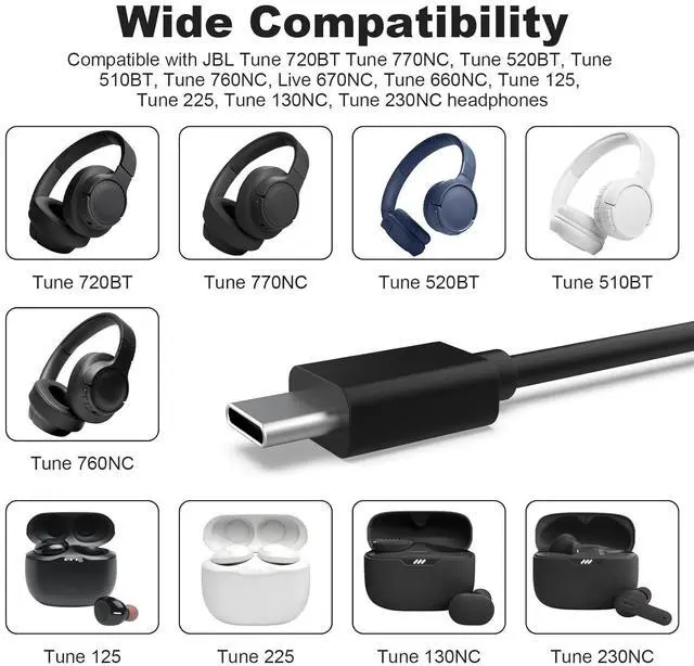 Compatibility Models: This USB C charging cable for Srhythm NiceComfort 15, NiceComfort 25, NiceComfort 35, NiceComfort 85, SoulMate Series 5, SoulMate Series 3 Wireless Bluetooth Noise Cancelling Headphones and other device with a USB-C charging port.