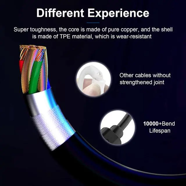 Quality Assurance: Toxaoii USB C charging cable adopt thickened PVC material and advanced welding technology ensure that the metal part will not break, and it can withstand 10,000+ bending tests, the cable has tensile resistance, safety, even if it is frequently folded and bent, the quality of the cable will not be damaged.
