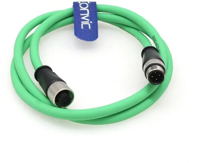 Green, 3M length (other length also can be make). Connector A: M12 4pin male.Connector B: M12 4pin female.