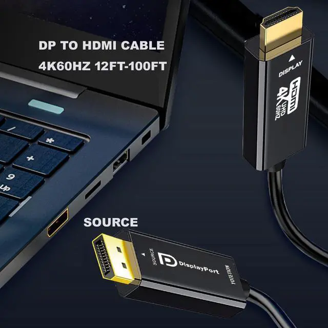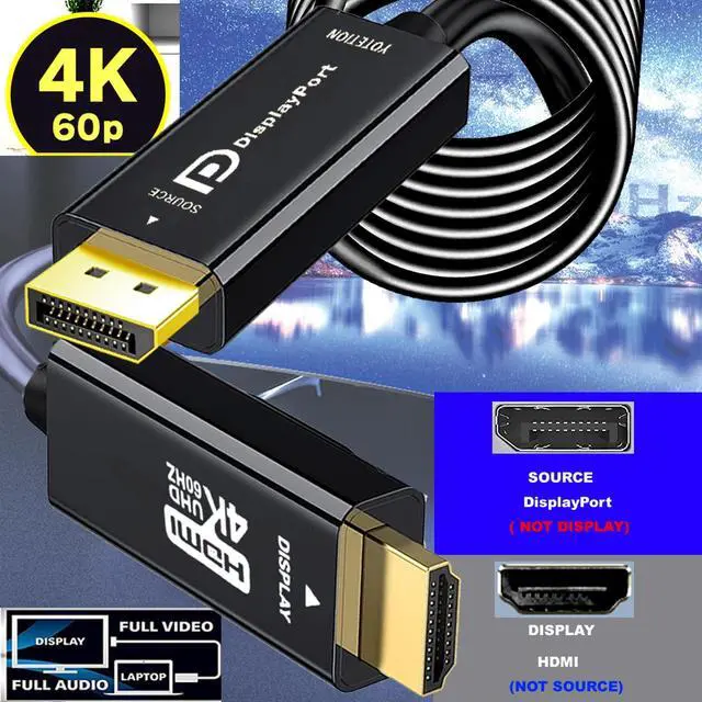 Please note: This is a one-way 4K DP to HDMI cable. The video signal is transmitted from Displayport to HDMI. No adapters, drivers, or software required.