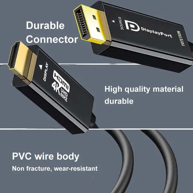 Excellent Compatibility: This HDMI to DisplayPort cable is compatible to connect your laptop, desktop, and GPU (AMD, NVIDIA) with DisplayPort (DP, DP++, DisplayPort++) to HDMI-equipped HDTVs, TVs, projectors, monitors, VR headsets, and more.