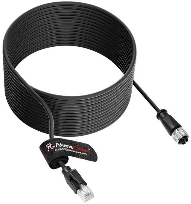 Plug A: M12 X Coded 8 Pin Female. Plug B: RJ45. Cable Length: 15m/49.2ft. We can customize cables with other length, please send a message to us before making the order.