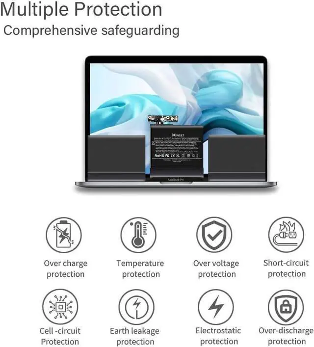 Macbook pro battery replacement A1708 with Overheating protection/Overcurrent protection/Overvoltage protection/Overcharge protection/Short circuit protection/Over discharge protection/Circuit Protection & Low power consumption