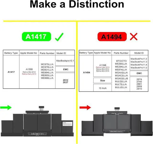 This A1417 battery is for MacBook Pro 15" A1398 Mid 2012 and Early 2013 Retina Series, NOT a MacBook A1494 battery!