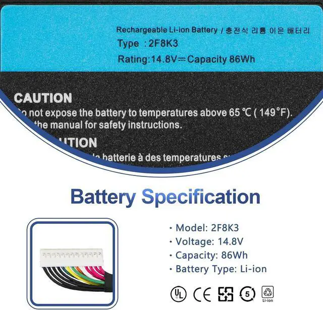 Compatible Part Number:2F8K3 02F8K3 0G33TT 0J33TT 0KJ2PX 0NU209 451-BBCB G33TT KJ2PX Laptop Battery.
