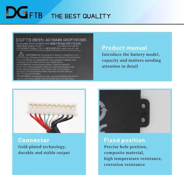 DG QualityGrade A cells mitigate the risk of battery leakage and maximize output stability. Built-in circuit protection, enhances safety of usage and extends battery life
