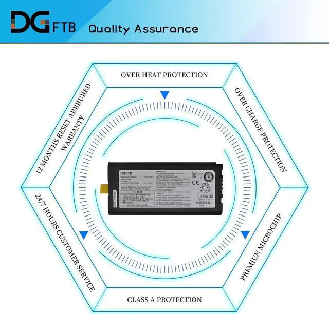 DG QualityGrade A cells mitigate the risk of battery leakage and maximize output stability. Built-in circuit protection, enhances safety of usage and extends battery life.