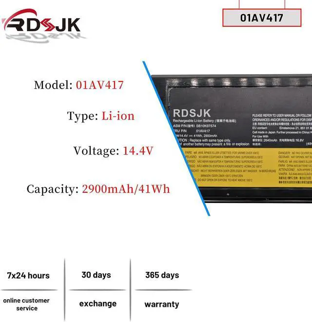 Battery type: Li-ion; Voltage: 14.6V; Capacity: 41Wh; Cells: 4-cell