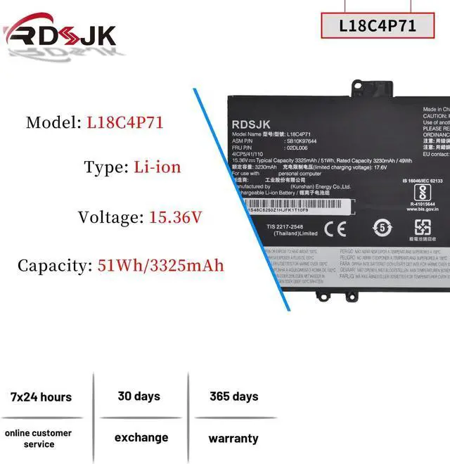 Battery Type: Li-ion; Voltage: 15.36V/15.4V; Capacity: 51Wh; Color: Black